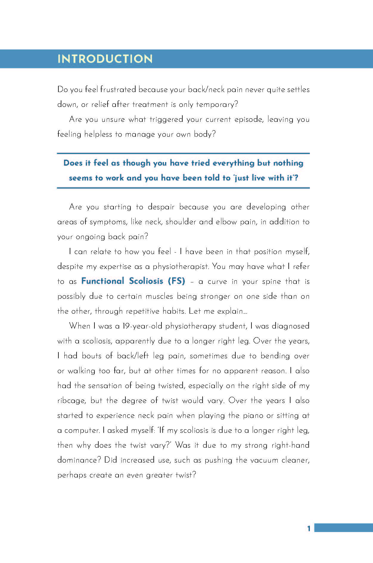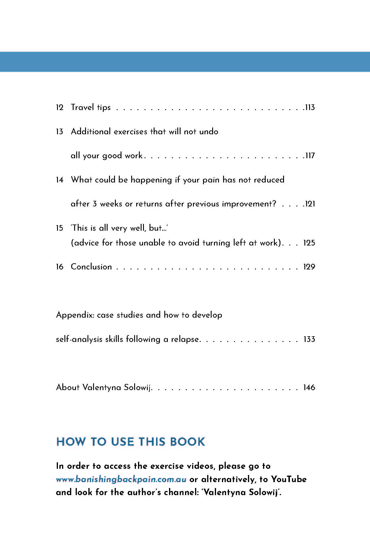 Based on the author’s personal experience of recurrent back/neck pain and the knowledge gleaned over a 40 year physiotherapy career, this book may well be what you have been searching for. Thinking outside the box, Valentyna has developed a simple and effective self-management programme, based on 4 basic exercises and modification of everyday habits. Read on…